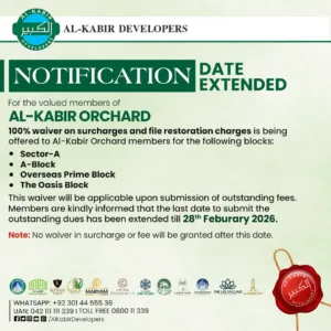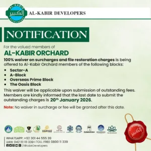 Embark on a transformative journey where opulence meets affordability, marking a first in Pakistanโs history. Al-Kabir Developers proudly introducesย The Oasis โ By Al Kabir Developersย within the prestigious Al Kabir Orchardโa sanctuary where luxury and lifestyle converge.