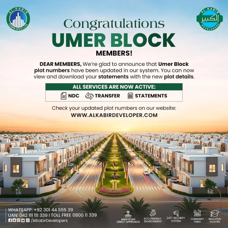 Congratulations Umer Block Members, Umer Block Allotments Released — Check Your Plot Status Online October 31, 2025