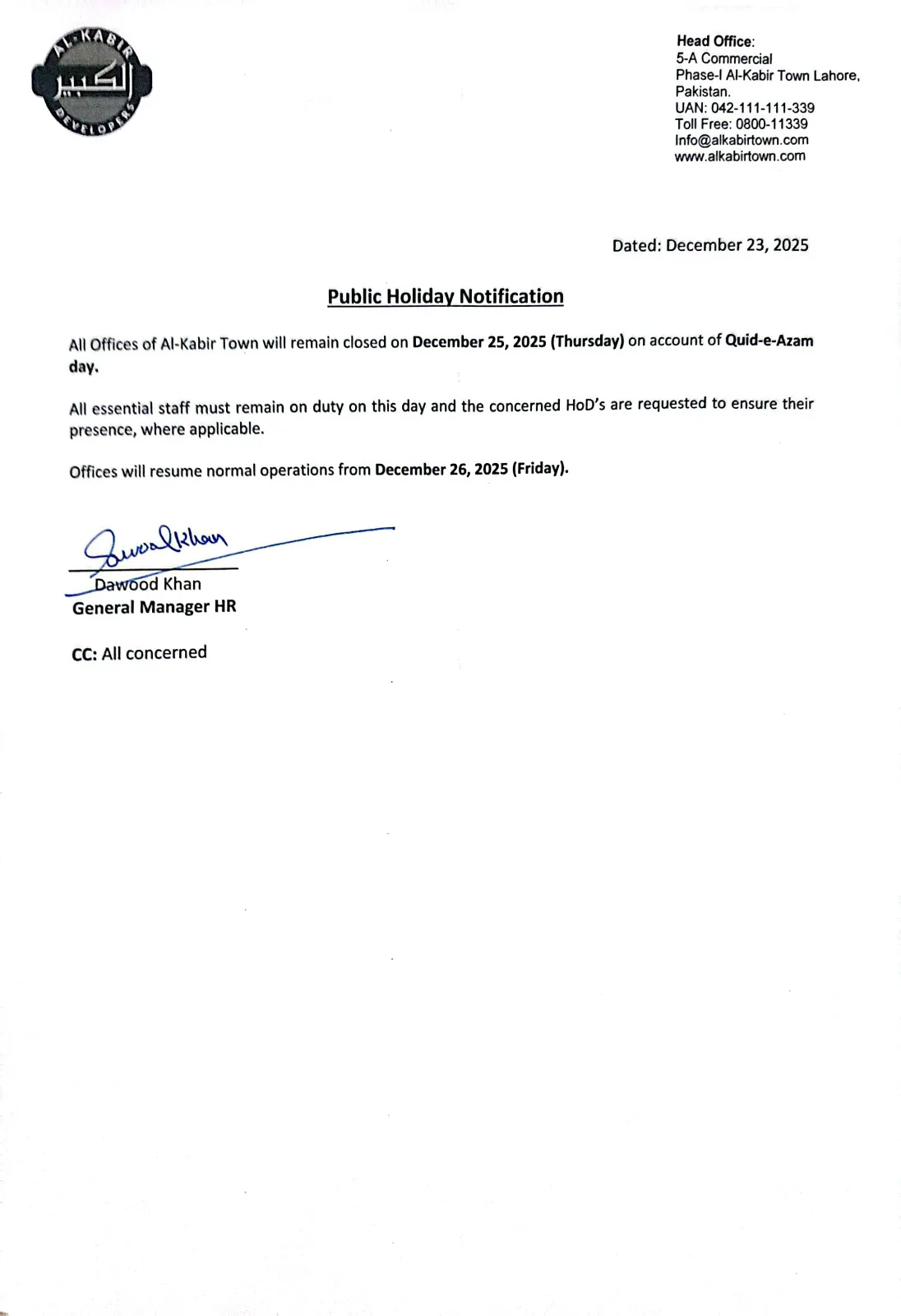 Public Holiday Notification,